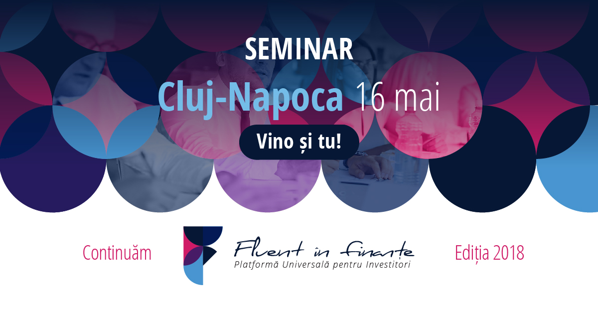 Te asteptam la seminarul educational „Fluent in Finante” pentru a afla mai multe despre investitiile la bursa si despre cum poti deveni investitor!