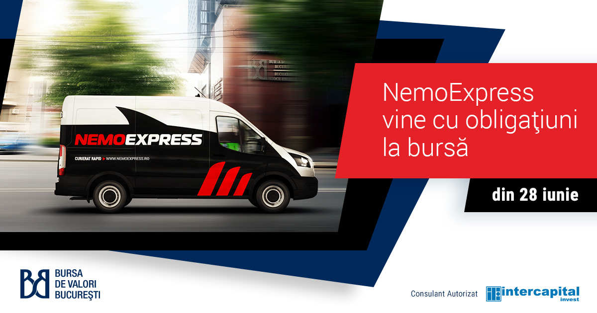 Compania de curierat Nemo Expres Logistic (NemoExpress) face astazi, 28 iunie, primul pas la Bursa de Valori Bucuresti (BVB) prin listarea obligatiunilor in valoare de 1,57 milioane de euro pe Sistemul Multilateral de Tranzactionare al BVB. Obligatiunile se tranzactioneaza sub simbolul bursier NEMO23E. Fondurile atrase in cadrul plasamentului privat de obligatiuni, din iulie 2020, sunt utilizate pentru dezvoltarea activitatii, investitii in software, achizitii de mijloace de transport, combustibil sau angajarea de personal suplimentar. Conform companiei, aceste investitii vor sustine cresterea numarului de clienti, a volumului de marfa transportat si implicit cresterea cotei de piata.