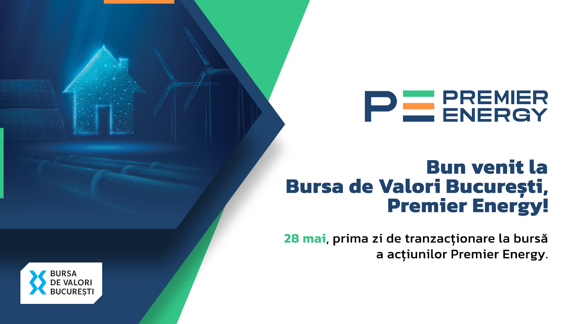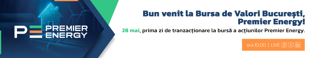 Bursa de Valori Bucuresti va invita marti 28 mai 2024, la deschiderea oficiala dedicata listarii companiei Premier Energy la bursa. Furnizorul de gaze naturale si electricitate Premier Energy a derulat, in perioada 8 – 15 mai, o oferta publica initiala prin care a atras 695 milioane lei (aproape 140 milioane euro), fiind cel mai mare IPO derulat la bursa de o companie antreprenoriala, in ultimii 5 ani.