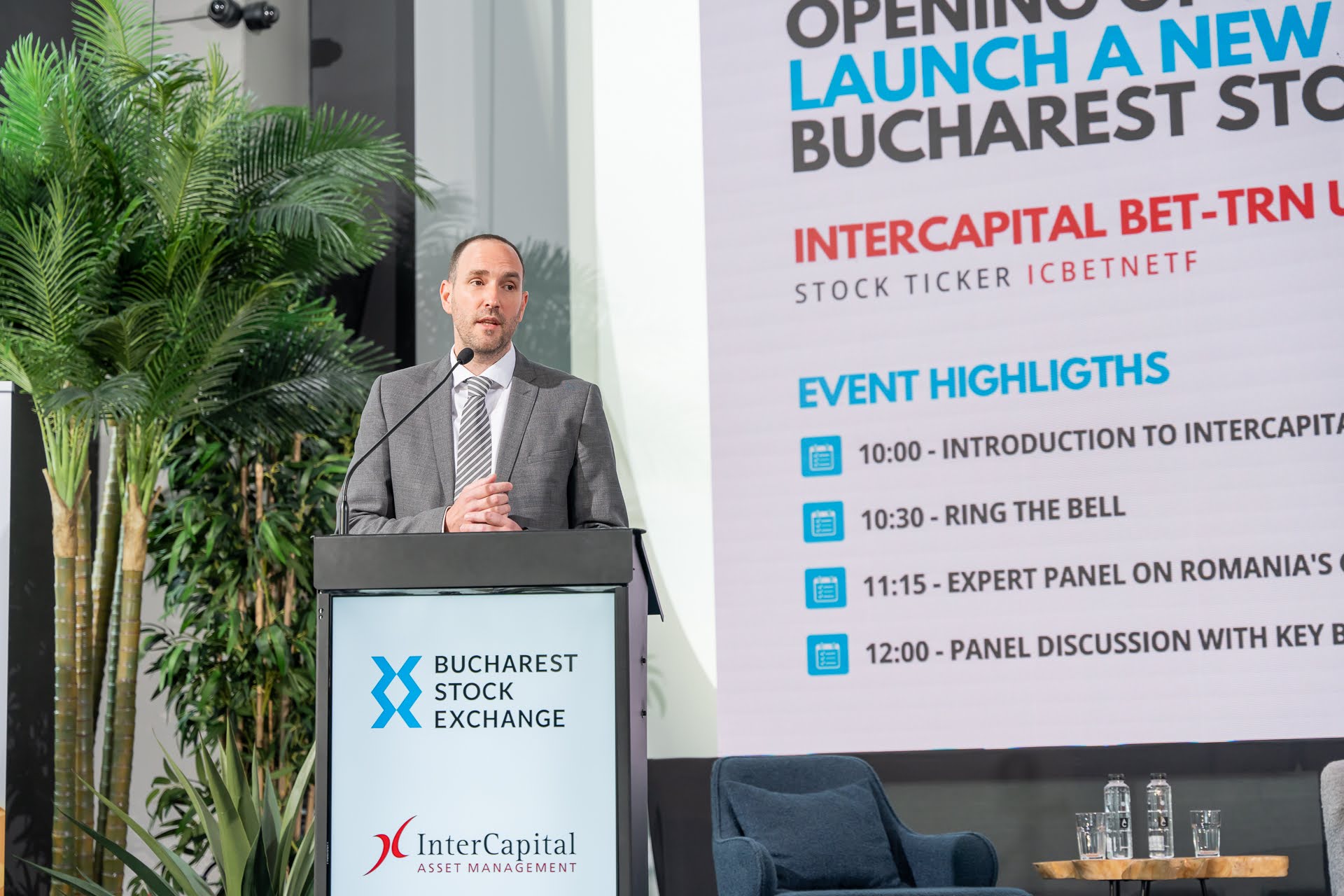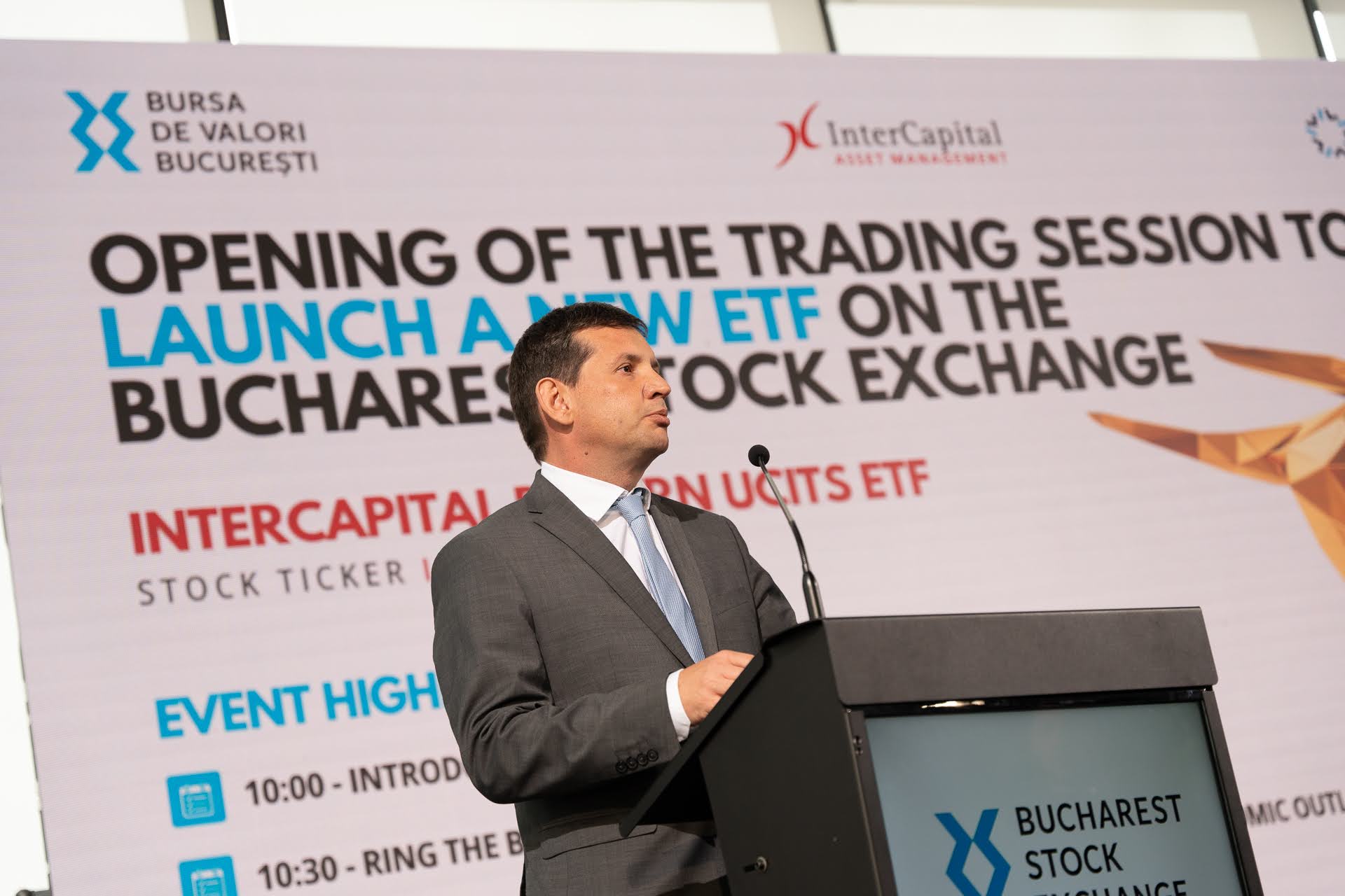 „Avem tot mai multi investitori la Bursa de Valori Bucuresti, iar piata de capital locala le ofera tot mai multe oportunitati de diversificare a portoliului, de la actiuni, obligatiuni, produse structurate, pana la ETF-uri. Atat cresterea numarului de investitori de retail, cat si a activelor nete a fondurilor ce investesc la BVB, au generat de la inceputul anului o majorare a capitalizarii bursiere pana la 356 de miliarde lei. Apetitul investitorilor de a tranzactiona unitati de fond listate la bursa a crescut in ultimii ani. Incepand de astazi acestia au acces la un nou instrument investibil prin care pot accesa perfomanta celor mai importante 20 de companii listate la BVB. Ne bucura parteneriatul cu echipa InterCapital Asset Management care a creat acest fond de investitii tranzactionabil, disponibil acum pe trei piete din regiune: Bucuresti, Zagreb si Ljubljana”, a declarat Adrian Tanase, CEO Bursa de Valori Bucuresti.