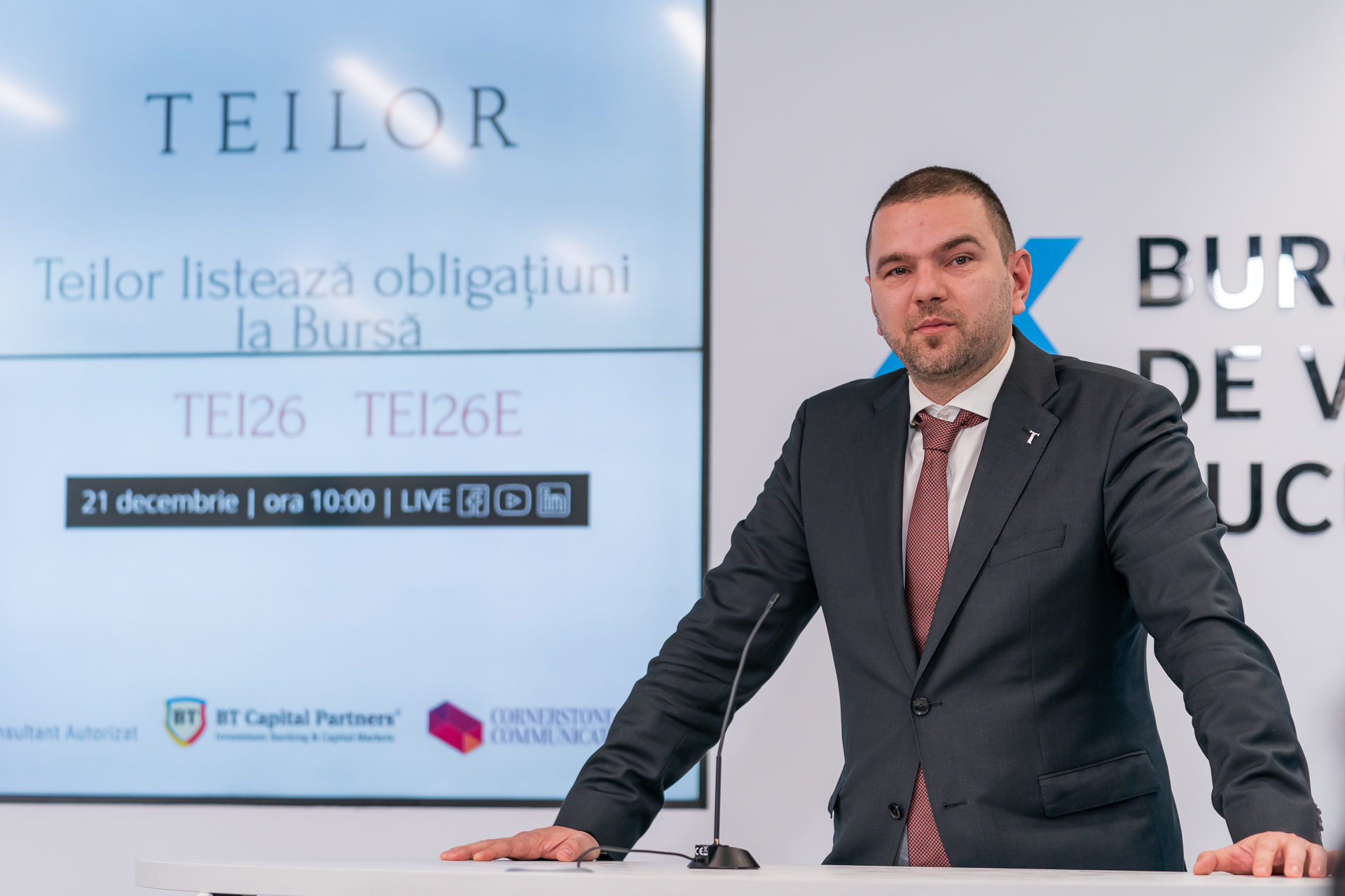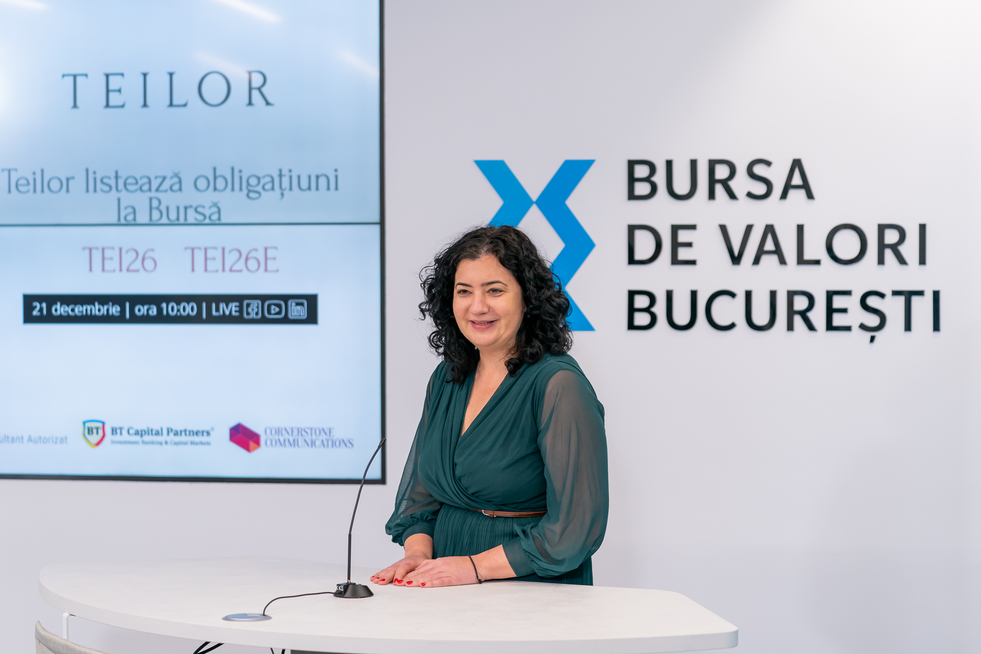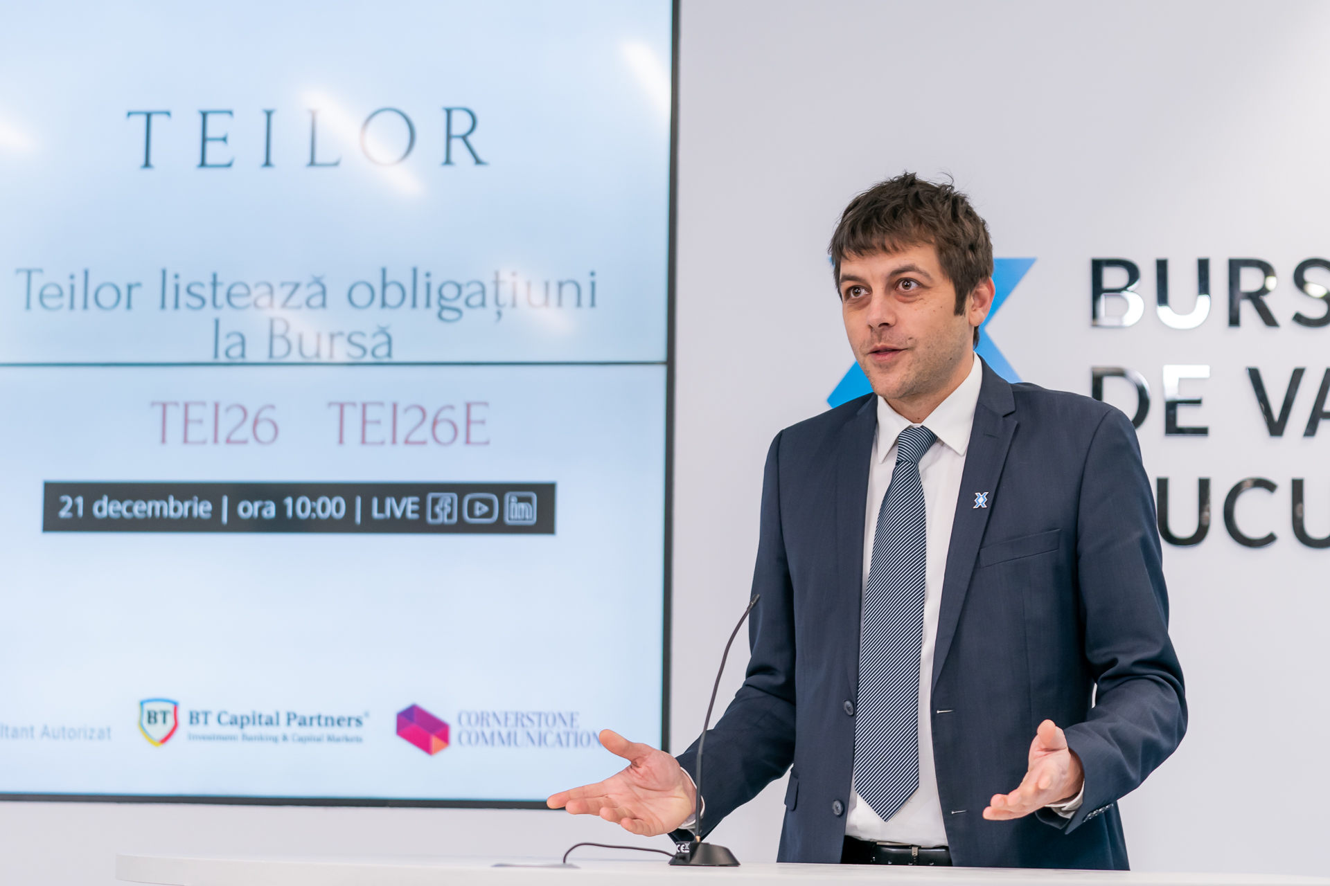 „Misiunea noastra la BT Capital Partners este sa colaboram cu antreprenori romani vizionari pentru finantarea planurilor de dezvoltare ale acestora. Cu un brand remarcabil construit in ultimii 20 de ani, sustinut de o echipa de peste 700 de profesionisti, TEILOR este una dintre cele mai frumoase povesti antreprenoriale din Romania. Suntem incantati ca am colaborat cu TEILOR Holding si am atras capital pentru emiterea inaugurala de obligatiuni corporative a companiei pe piata AeRO a Bursei de Valori Bucuresti si asteptam cu nerabdare sa continuam, impreuna, aceasta calatorie pe piata de capital din Romania”, a declarat Daniela Secara, Director General al BT Capital Partners.