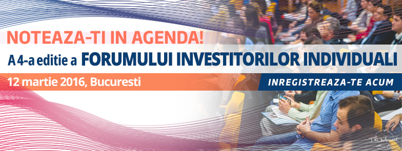 Sambata, 12 martie, 2016, Bursa de Valori Bucuresti va organiza a 4 a editie a Forumului Investitorilor Individuali in Bucuresti. Dupa succesul editiilor anterioare, evenimentul va reuni atat investitori incepatori, cat si avansati. Cei prezenti vor avea la dispozitie agende specifice pentru nivelul de cunostinte si pregatire a fiecaruia.