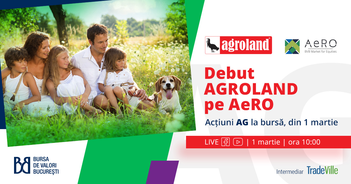 Bursa de Valori Bucuresti (BVB) va invita la deschiderea oficiala a sedintei de tranzactionare de luni, 1 martie, dedicata listarii actiunilor Agroland Business System, societatea care opereaza cea mai extinsa retea de magazine agricole din Romania. Actiunile vor fi listate pe Sistemul Multilateral de Tranzactionare (SMT) al BVB si vor fi tranzactionate sub simbolul AG.