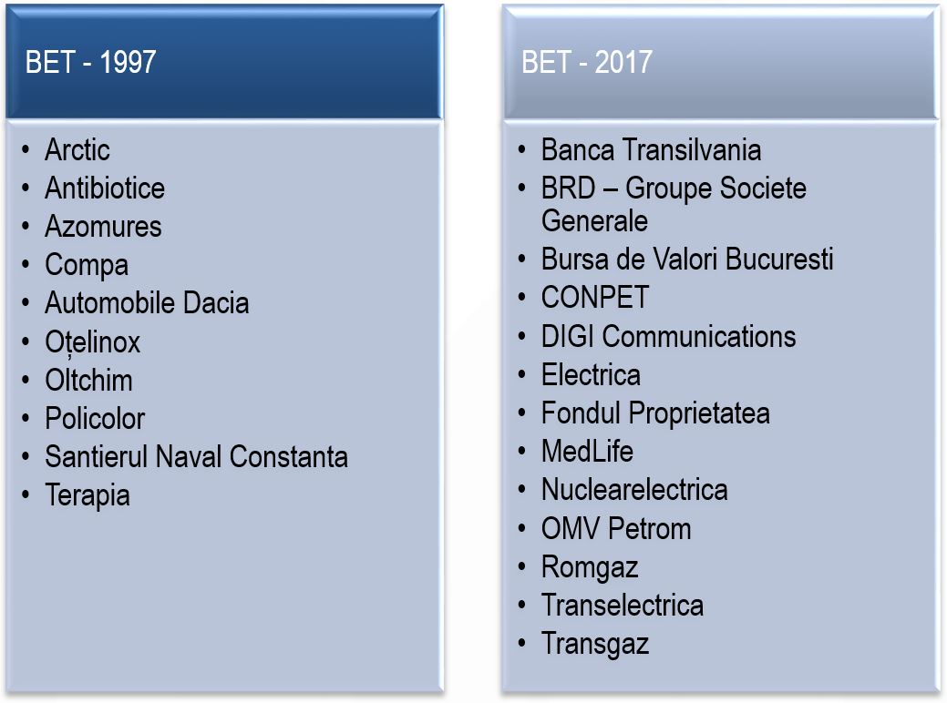 Componenta indice BET 1997 si 2017