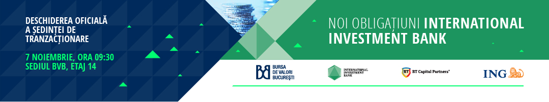 International Investment Bank (IIB) si Bursa de Valori Bucuresti (BVB) va invita, pe 7 noiembrie, la deschiderea oficiala a sedintei de tranzactionare cu ocazia listarii unei noi emisiuni de obligatiuni International Investment Bank.