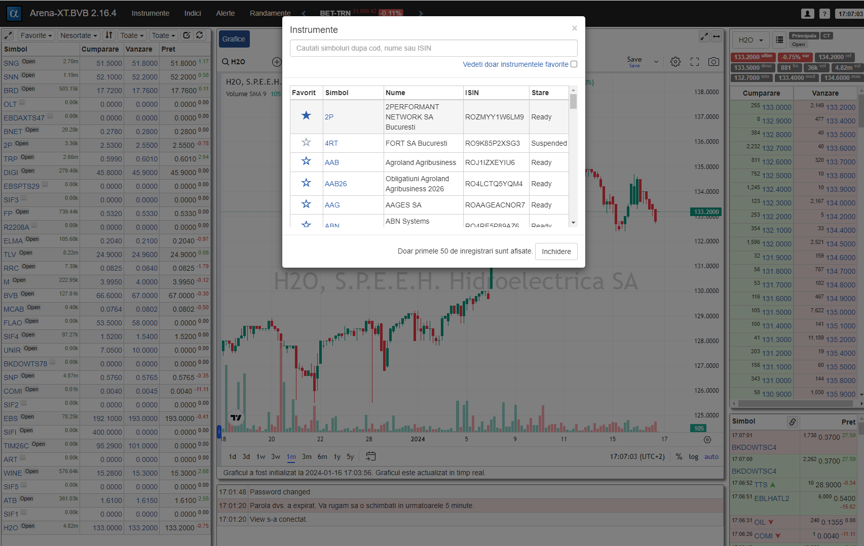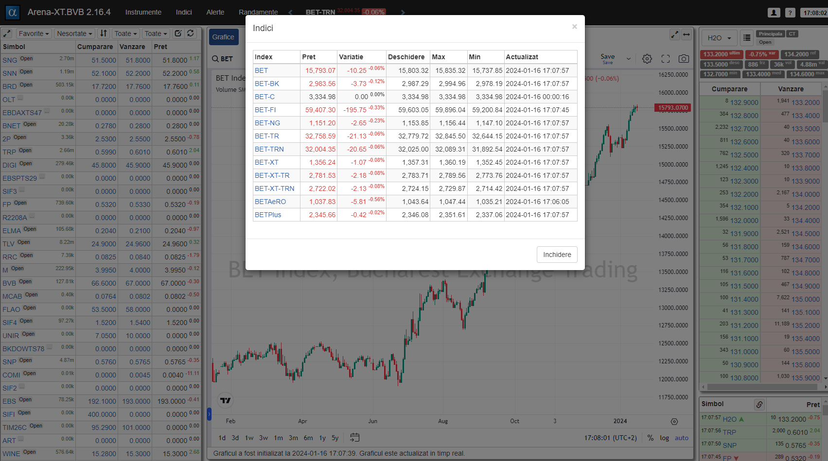 Acces la date de piata in timp real pe care si traderii profesionisti se bazeaza, incluzand informatii de tranzactionare, stiri piata, order book complet pentru toate instrumentele financiare din pietele administrate de BVB. Toate acestea intr-o aplicatie web based cu o interfata simpla si flexibila